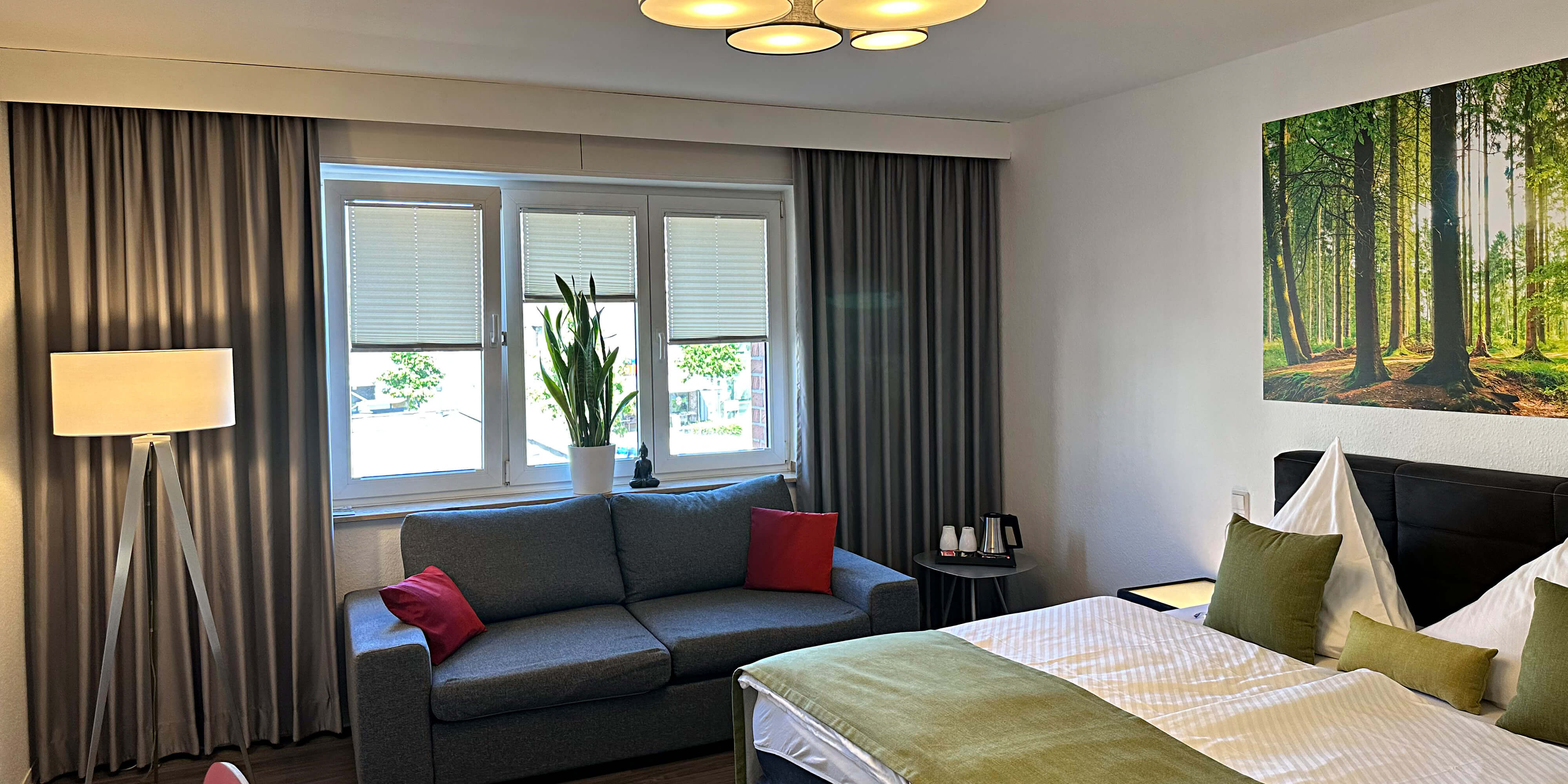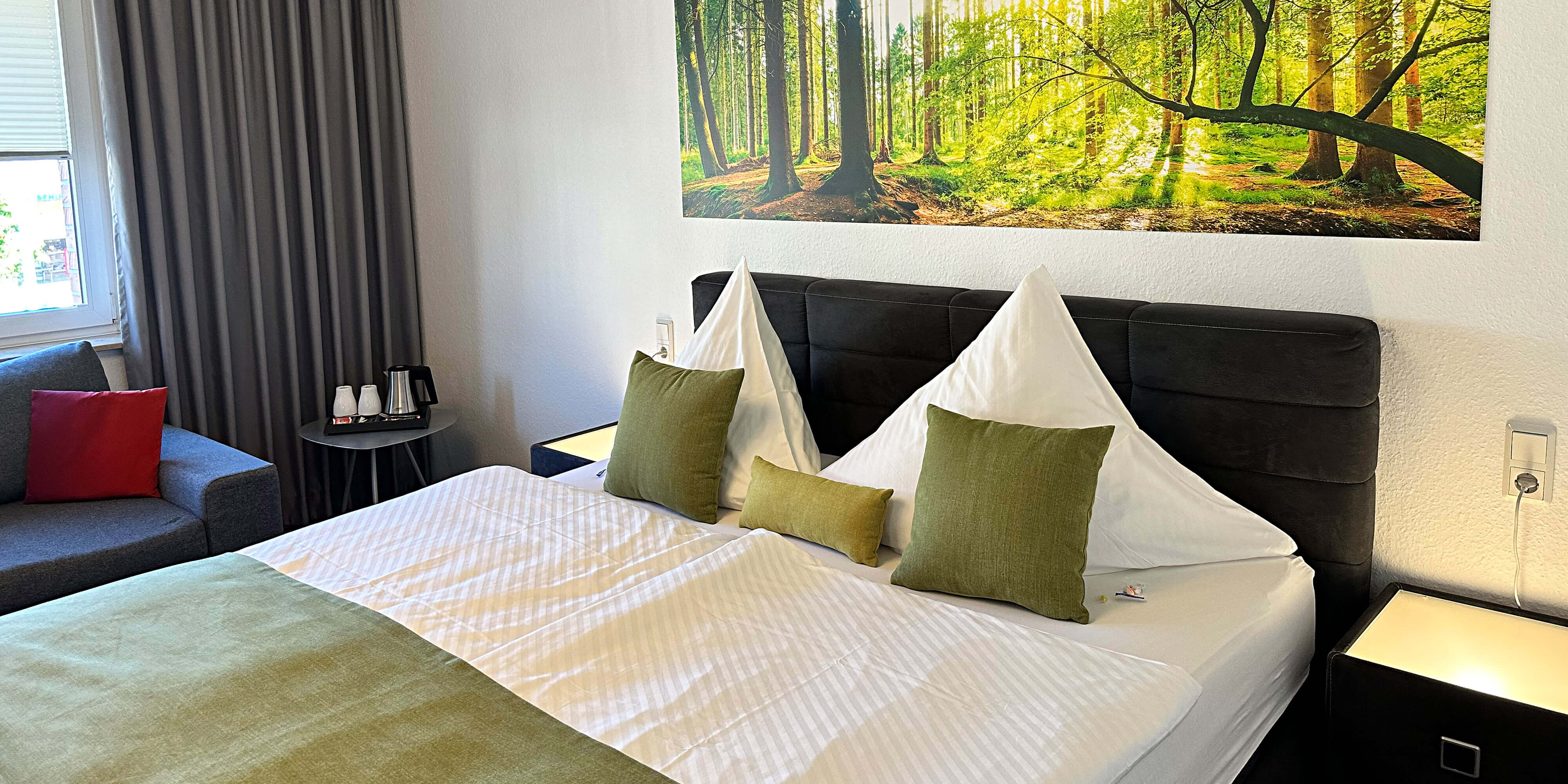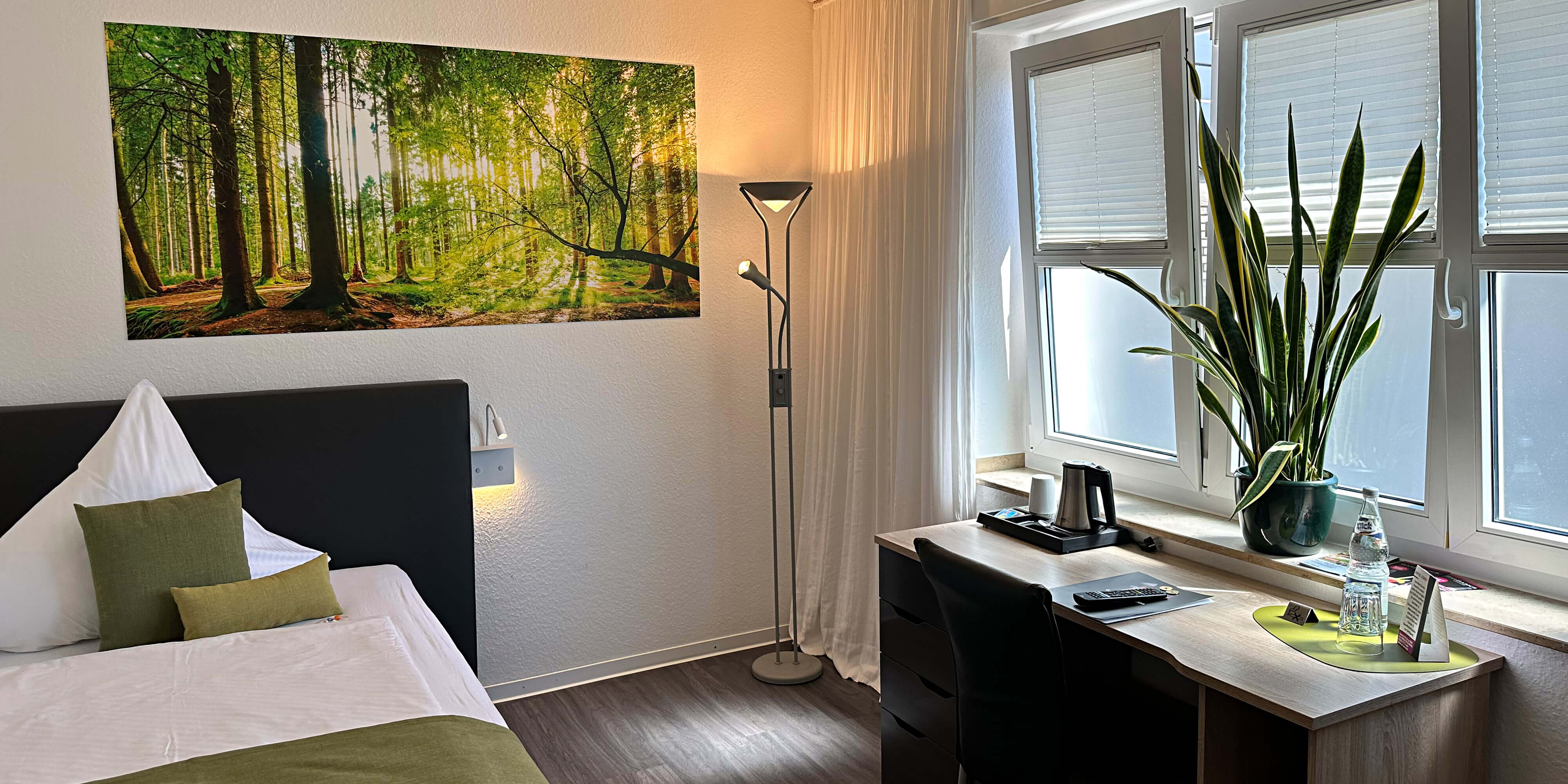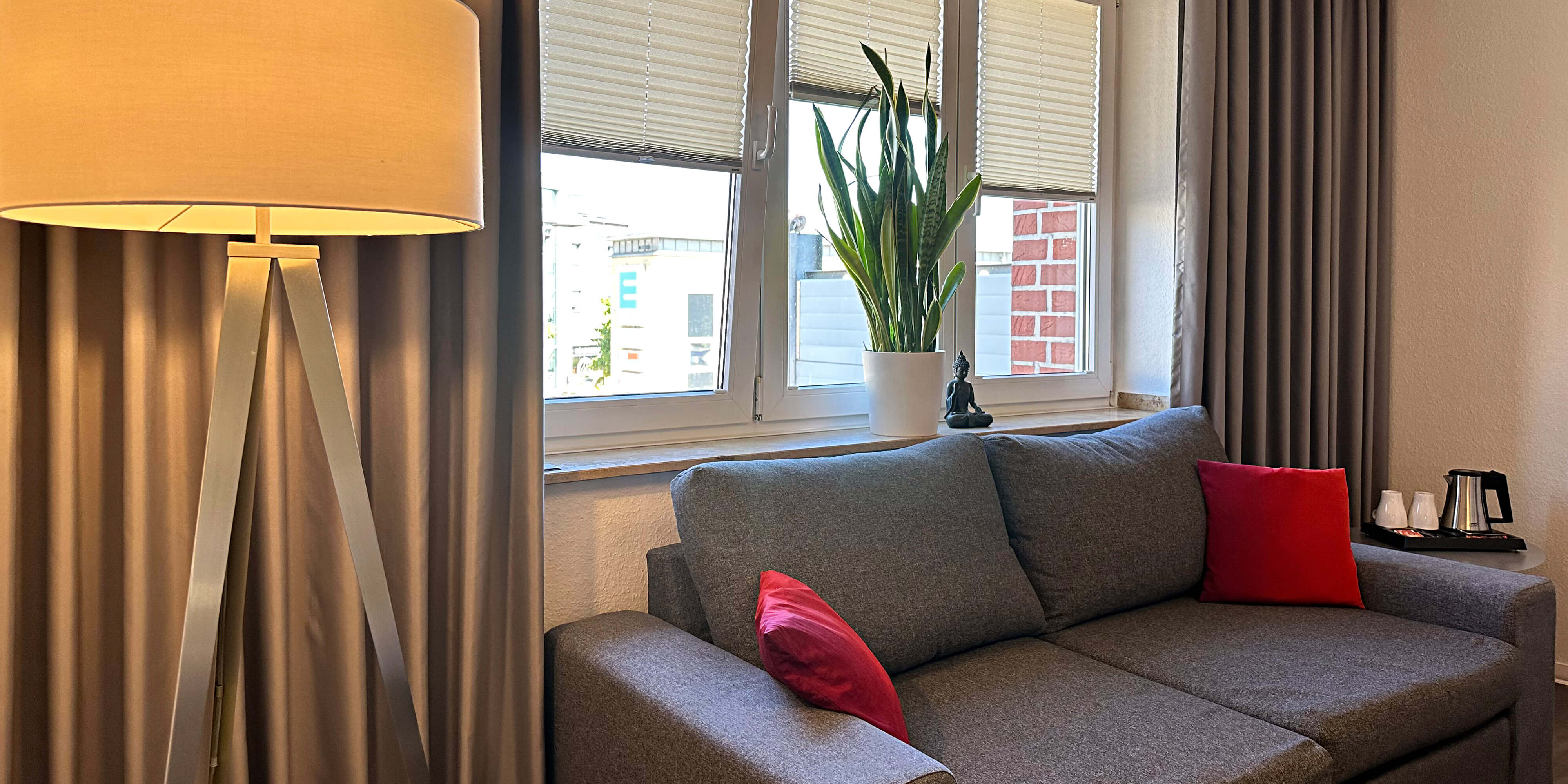 Zur Begrüßung erhalten Sie gratis eine Flasche Mineralwasser und für einen guten Start in den Tag steht Ihnen ein Wasserkocher mit Kaffee- und Tee Equipment kostenfrei zur Verügung.